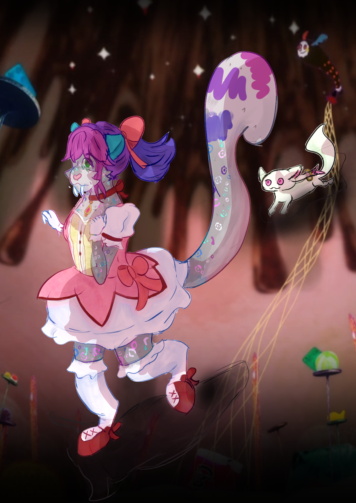 Once again, i cannot do this for each indvidual piece. L->R: top row: sketch of aisha clanclan, a meme of my fursona about to be grabbed by the kitty grabber, my fursona as madoka, middle: a prinny in black and white water color, my fursona again sitting for cat day(nsfw) tasteful nude bottom: utena, my sona with the gungnir symphogear