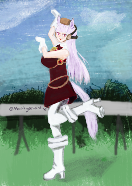 I cannot do alt text for the individual images L-> R top row: sketch of biwa hiyahide, an uma with really long, super curly hair and gold eyes. symboli rudolf, a horsegirl with long chestnut hair and purple eyes dressed as cca Char Aznable. sketch of meisho doto a horsegirl with chestnut and white hair in a blue maid outfit middle row: gold ship a horsegirl with long lavendar hair and eyes holding a sign that reads be silly in a school uniform. goldship again doing a rearing victory pose in a field in her red race outfit. bottom row: TM Opera O, a horsegirl prince with red hair and purple eyes holding her hand out. she has a small pink crown and is wearing a pink cape lined with fur and a gold epaulet, manhattan cafe, a horsegirl with long black hair with a white ahoge and gold eyes sitting in a cafe with a coffee cup witha cat on it. she is in her race gear, which is a black trenchcoat accented with a yellow tie